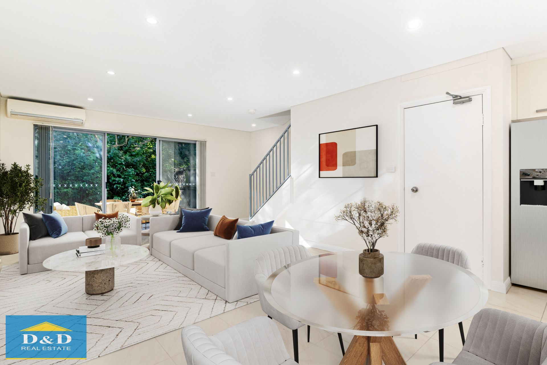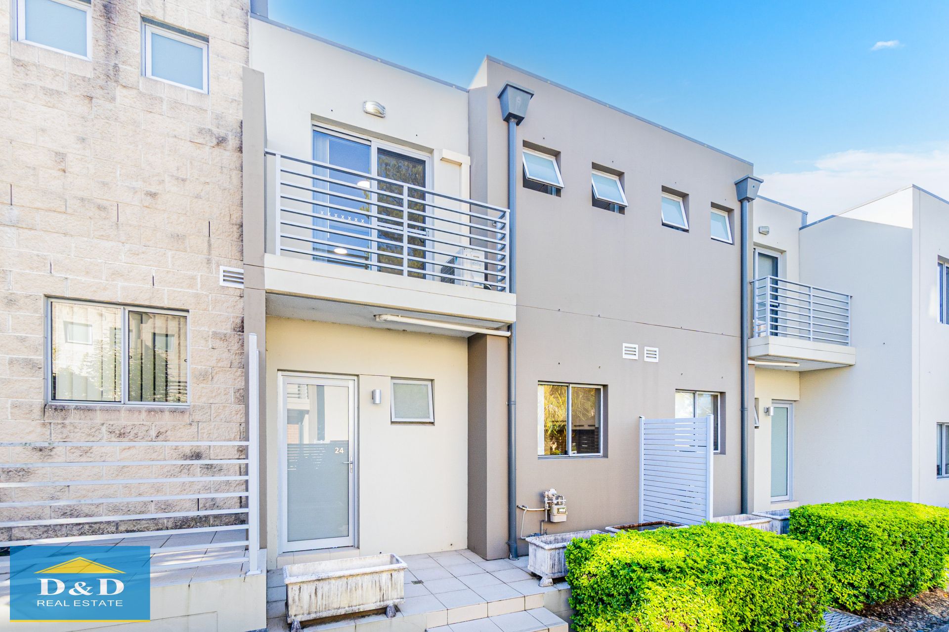 Sunny North aspect. Large sun-filled living area with polished porcelain tiles opening to a private, paved courtyard-perfect for entertaining. Two large bedrooms each include built-in robes and private balconies. Main bedroom features ensuite. Freshly painted throughout. Brand new timber flooring to staircase and upstairs areas. Brand new blinds and lighting. Air-conditioning throughout property, including bedrooms and living area.